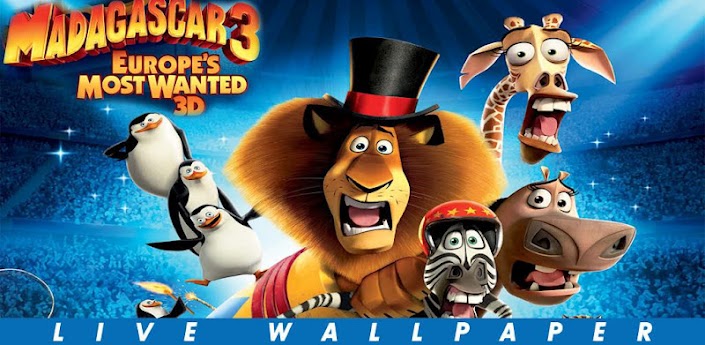 An animated Live Wallpaper of Madagascar 3 with sparkling background, shiny text and Animated Eyes of Character.