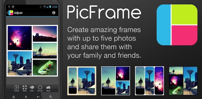 PicFrame helps you combine multiple photos into amazing looking frames and share them with your friends and family. With 36 frames, rounded corners, adjustable photo effects, adjustable border width and an easy border color picker you will always have a unique look.